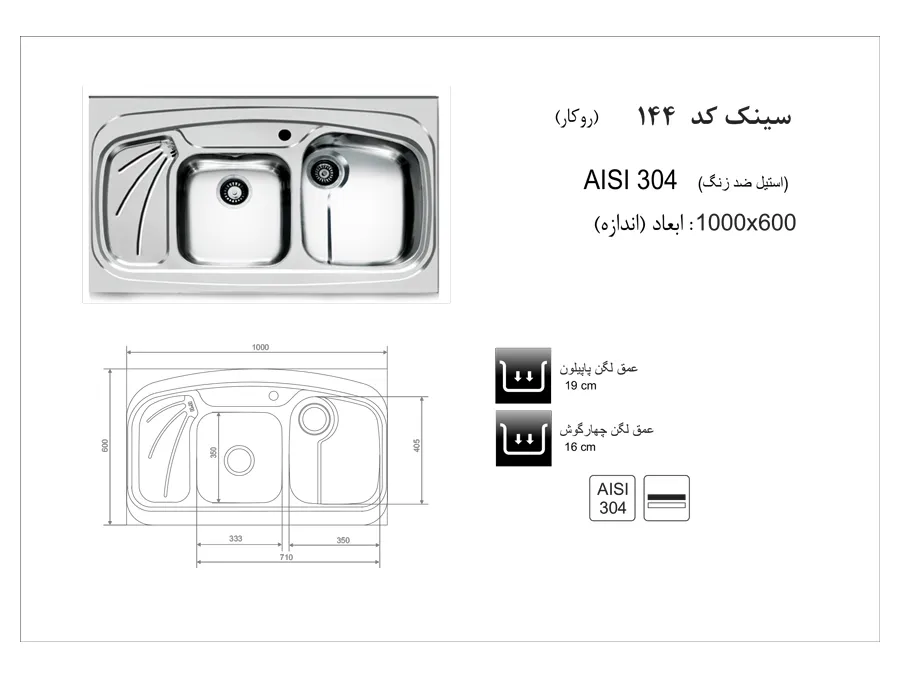 دسته: سینک ظرفشویی, سینک اخوان, سینک دو لگن, سینک روکار