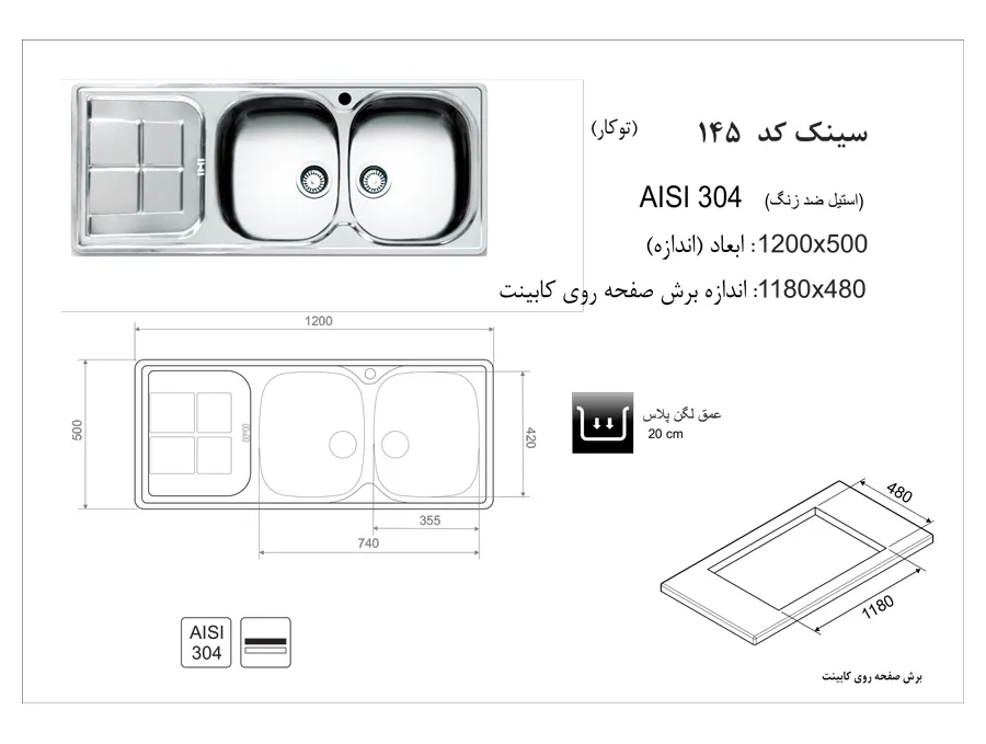 دسته: سینک ظرفشویی, سینک اخوان, سینک توکار, سینک دو لگن