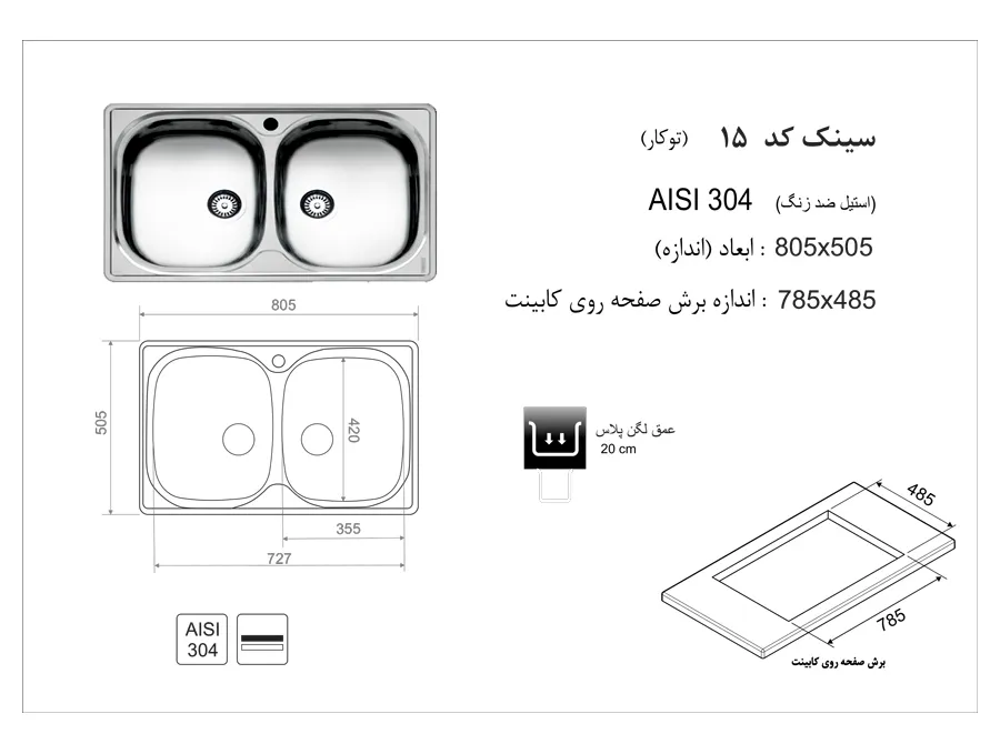 دسته: سینک ظرفشویی, سینک اخوان, سینک توکار, سینک دو لگن