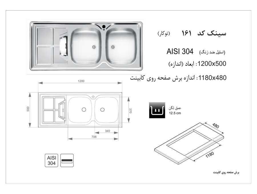 سینک اخوان مدل 161 توکار