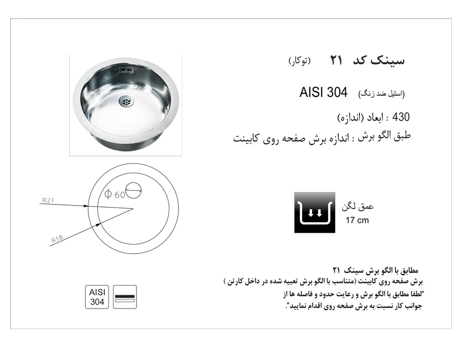 دسته: سینک ظرفشویی, سینک اخوان, سینک تک لگن, سینک توکار