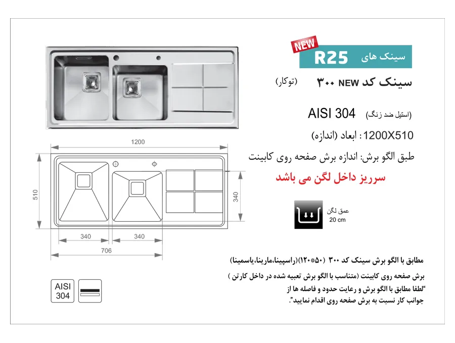 دسته: سینک ظرفشویی, سینک اخوان, سینک توکار, سینک دو لگن