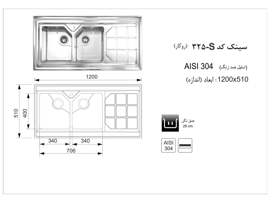 سینک اخوان کد 325s روکار