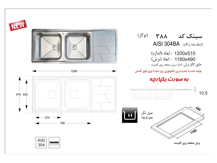دسته: سینک ظرفشویی, سینک اخوان, سینک توکار, سینک دو لگن