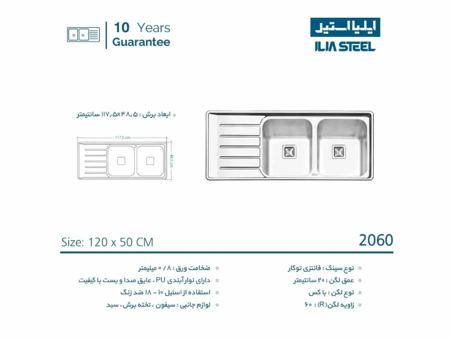 مشخصات سینک ایلیا استیل مدل 2060 توکار