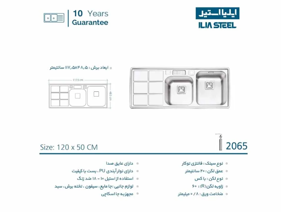 مشخصات سینک ایلیا استیل مدل 2065 توکار