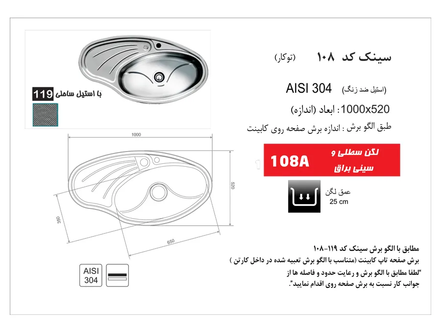 سینک توکار اخوان مدل 119