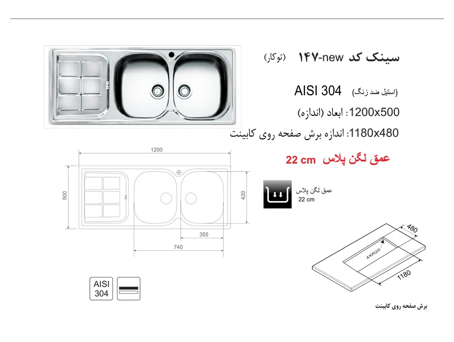 دسته: سینک ظرفشویی, سینک اخوان, سینک توکار, سینک دو لگن