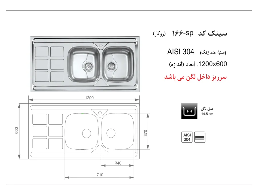 دسته: سینک ظرفشویی, سینک اخوان, سینک دو لگن, سینک روکار