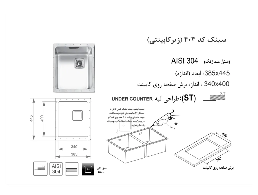 سینک زیر کابینتی اخوان کد 403