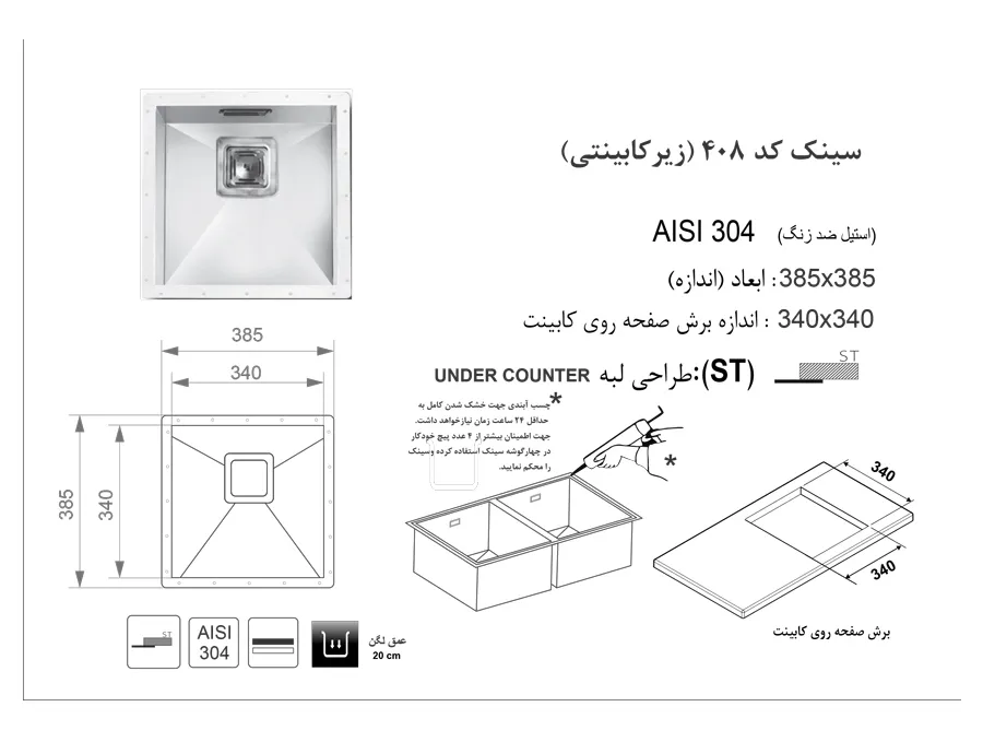 سینک زیر کابینتی اخوان کد 408