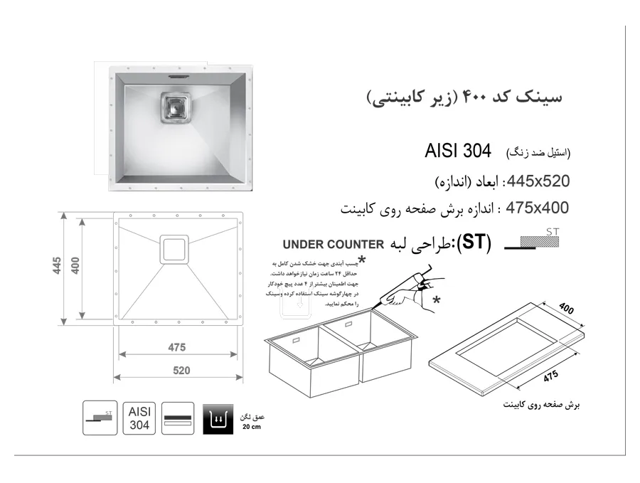سینک زیر کورینی اخوان کد 400