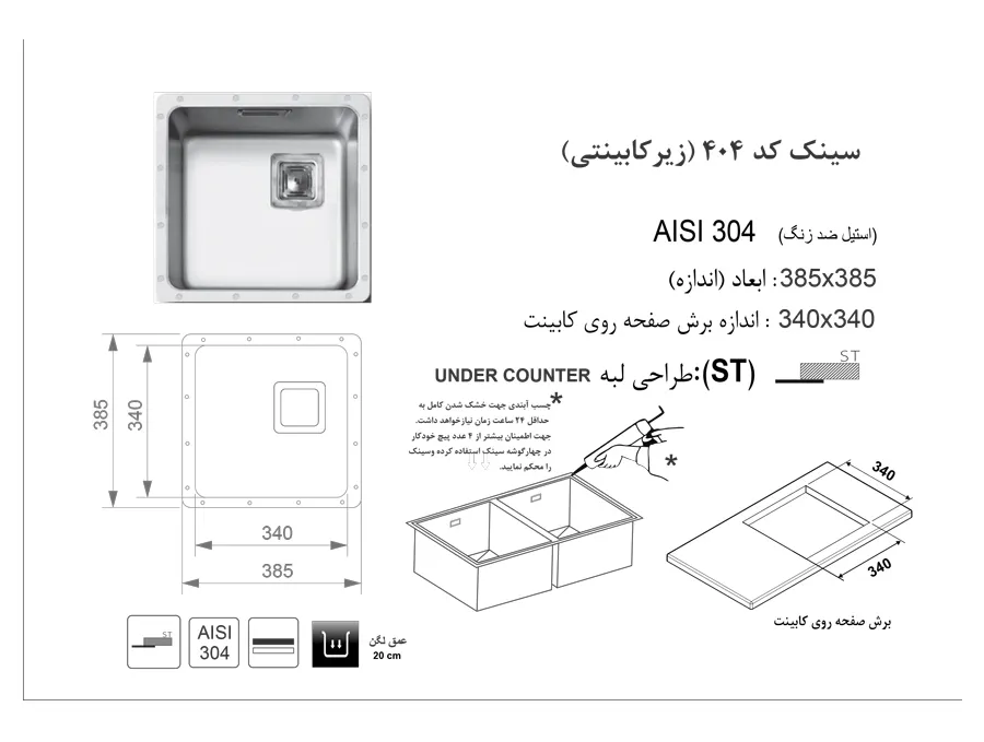 سینک زیر کورینی اخوان کد 404