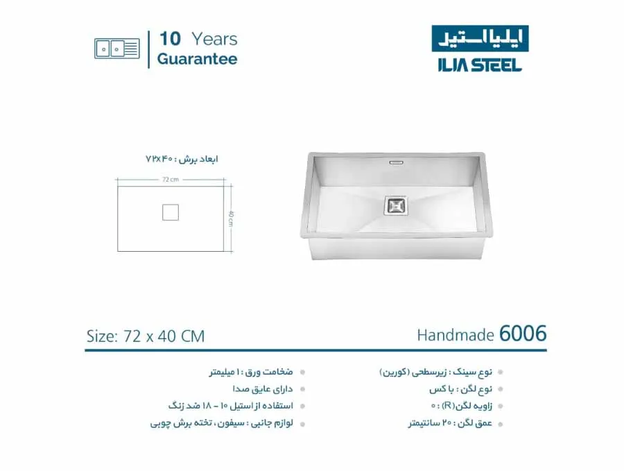 مشخصات سینک زیر کورینی ایلیا استیل مدل 6006