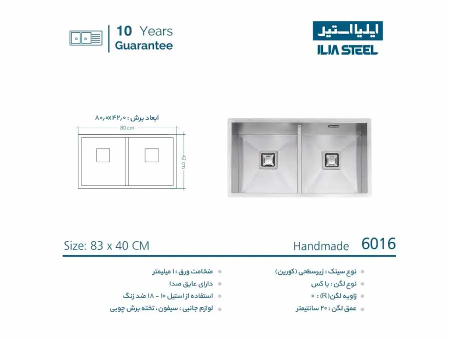 مشخصات سینک زیر کورینی ایلیا استیل مدل 6016