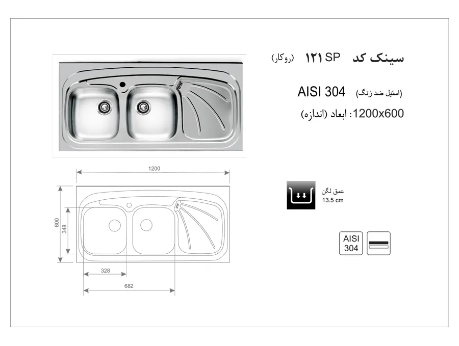 دسته: سینک ظرفشویی, سینک اخوان, سینک دو لگن, سینک روکار