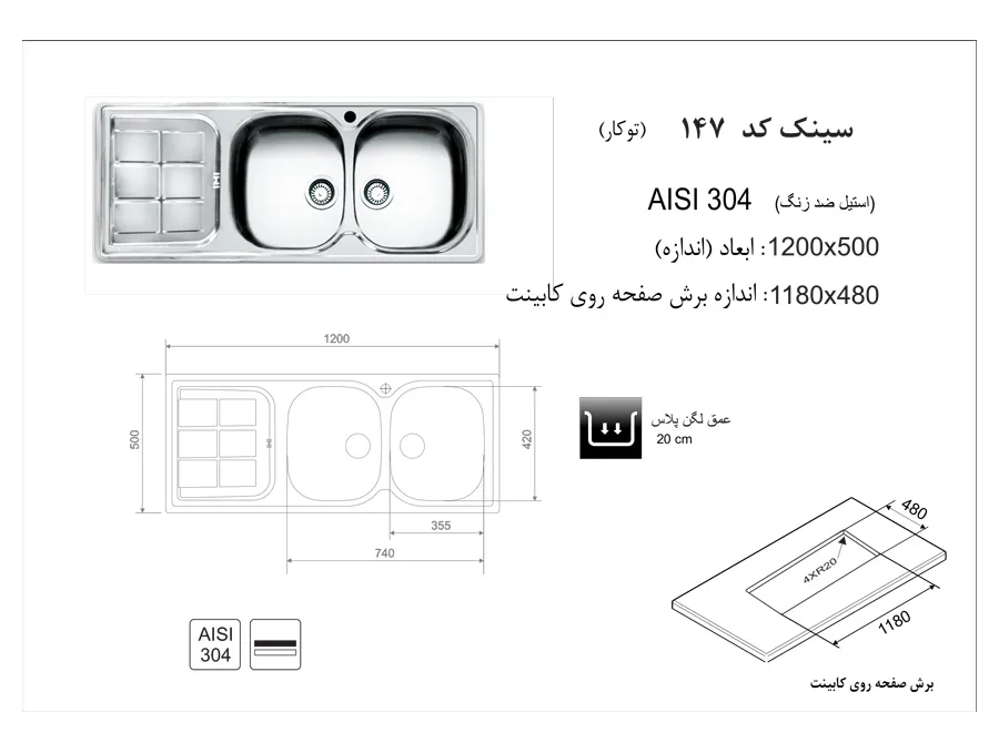 دسته: سینک ظرفشویی, سینک اخوان, سینک توکار, سینک دو لگن
