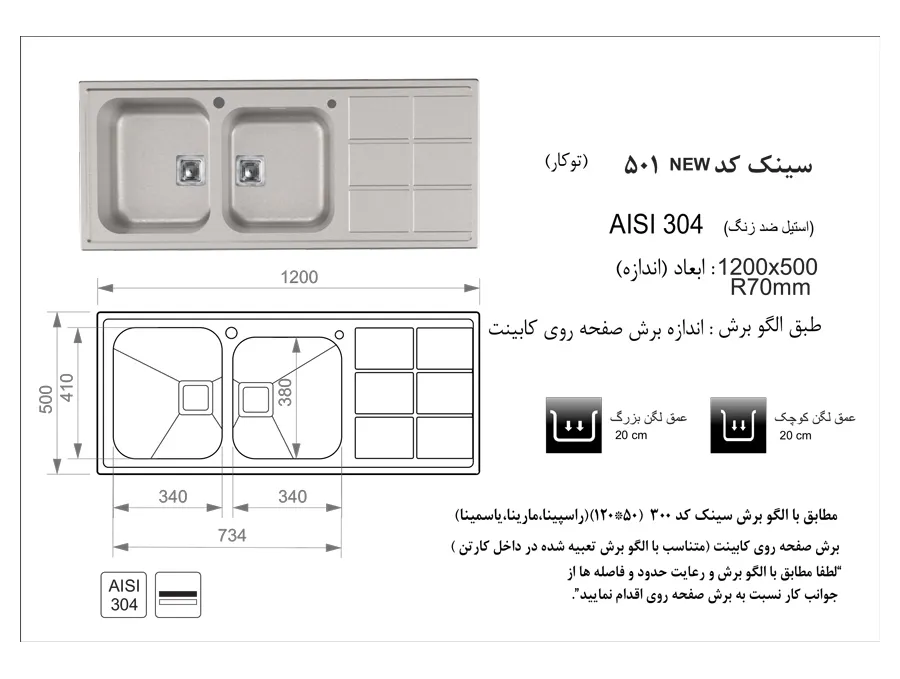 دسته: سینک ظرفشویی, سینک اخوان, سینک توکار, سینک دو لگن