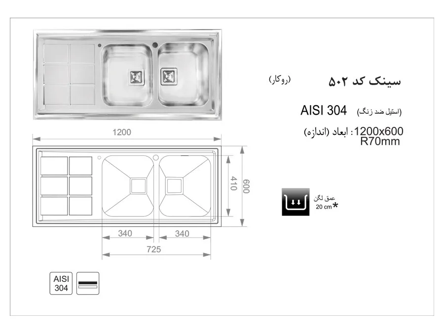 دسته: سینک ظرفشویی, سینک اخوان, سینک دو لگن, سینک روکار