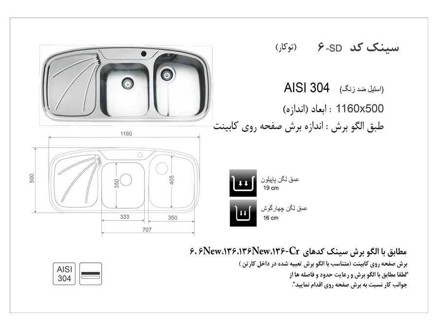 سینک ظرفشویی اخوان مدل 6SD توکار