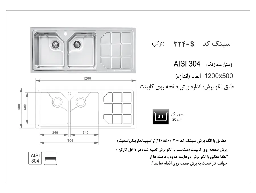 دسته: سینک ظرفشویی, سینک اخوان, سینک توکار, سینک دو لگن