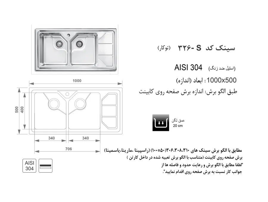 دسته: سینک ظرفشویی, سینک اخوان, سینک توکار, سینک دو لگن