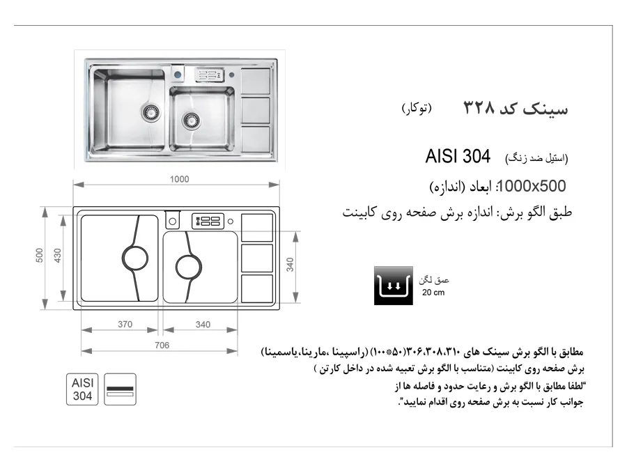 دسته: سینک ظرفشویی, سینک اخوان, سینک توکار, سینک دو لگن