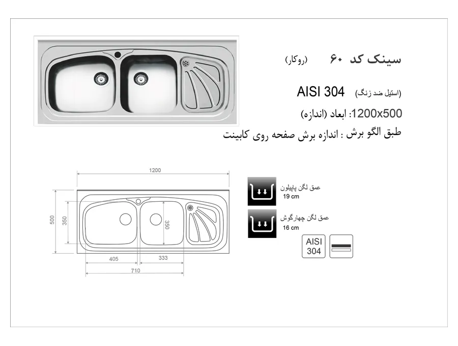 دسته: سینک ظرفشویی, سینک اخوان, سینک دو لگن, سینک روکار