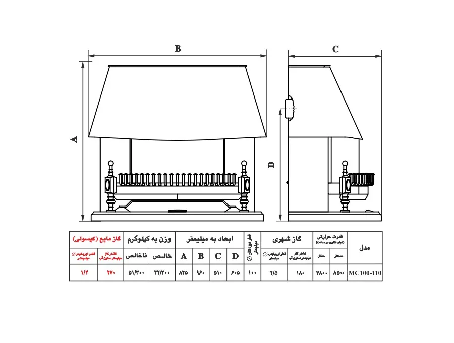 شومینه نیک کالا مدل قوسی مدرن MC110