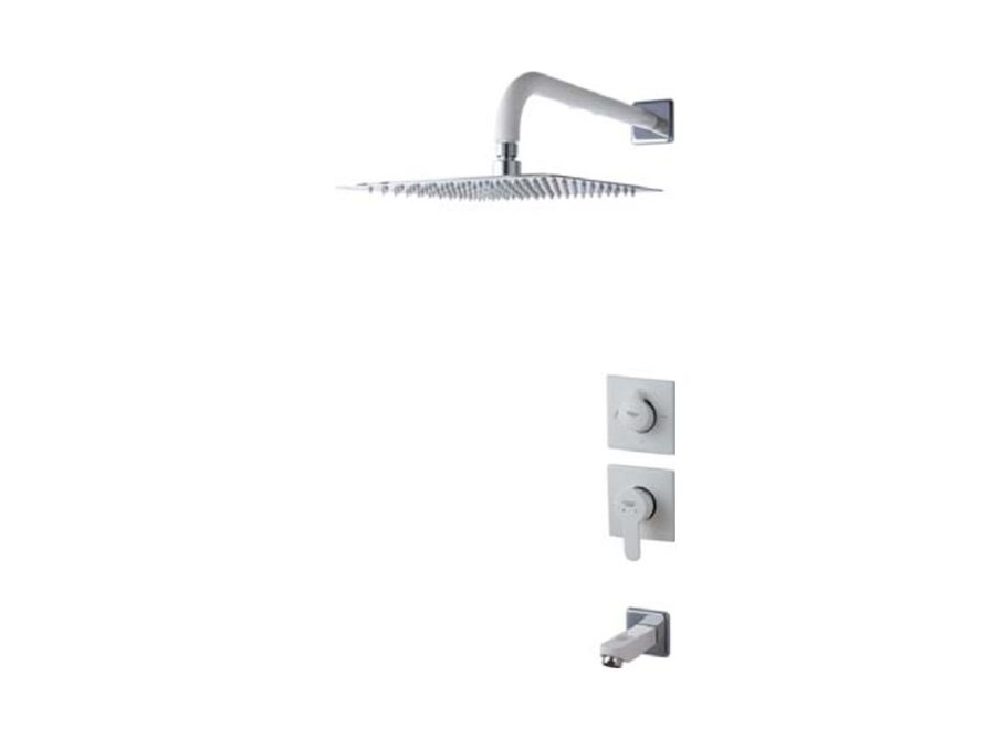 – شیر توکار حمام راسان کلاس دو شامل: دستگیره، سردوش ثابت و وان پرکن (آبریز) میباشد.