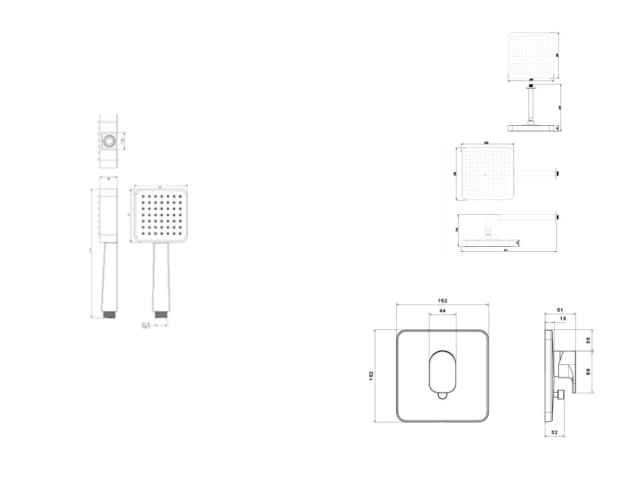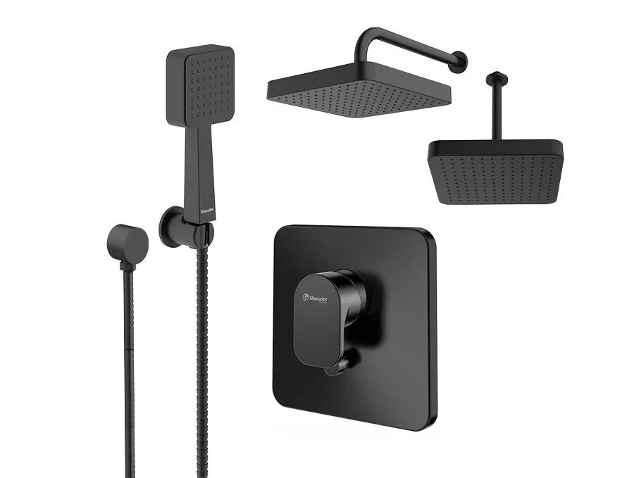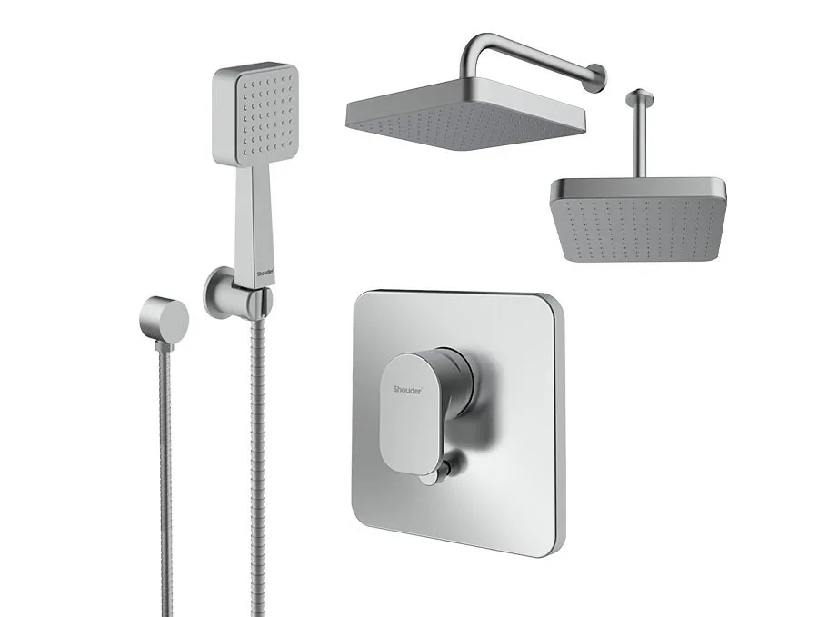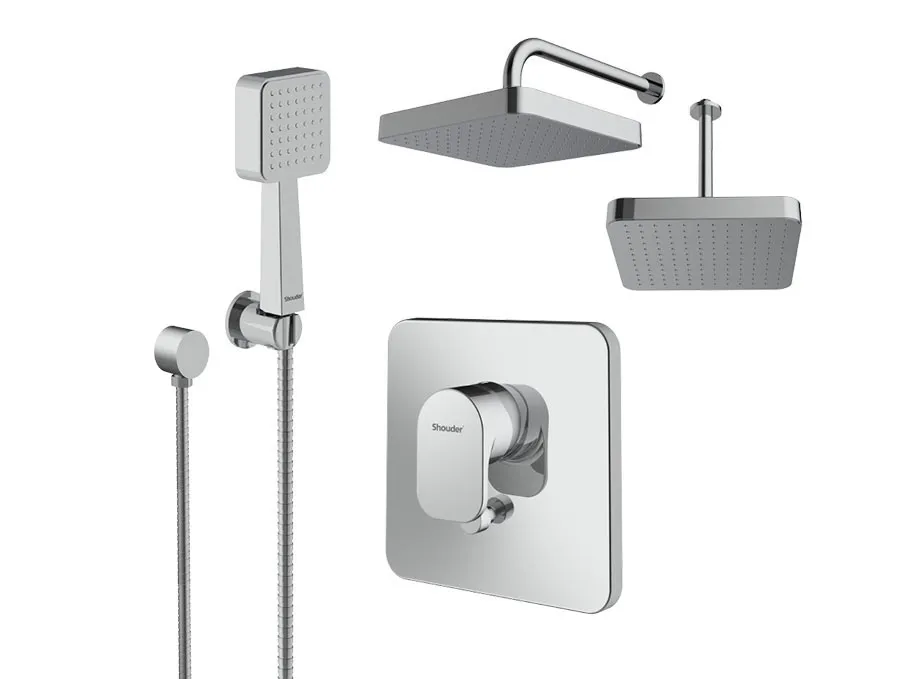 – شیر توکار حمام شودر تیپ سه شامل : پلیت، سر دوش ثابت، بازویی سقفی و سردوش متحرک میباشد.