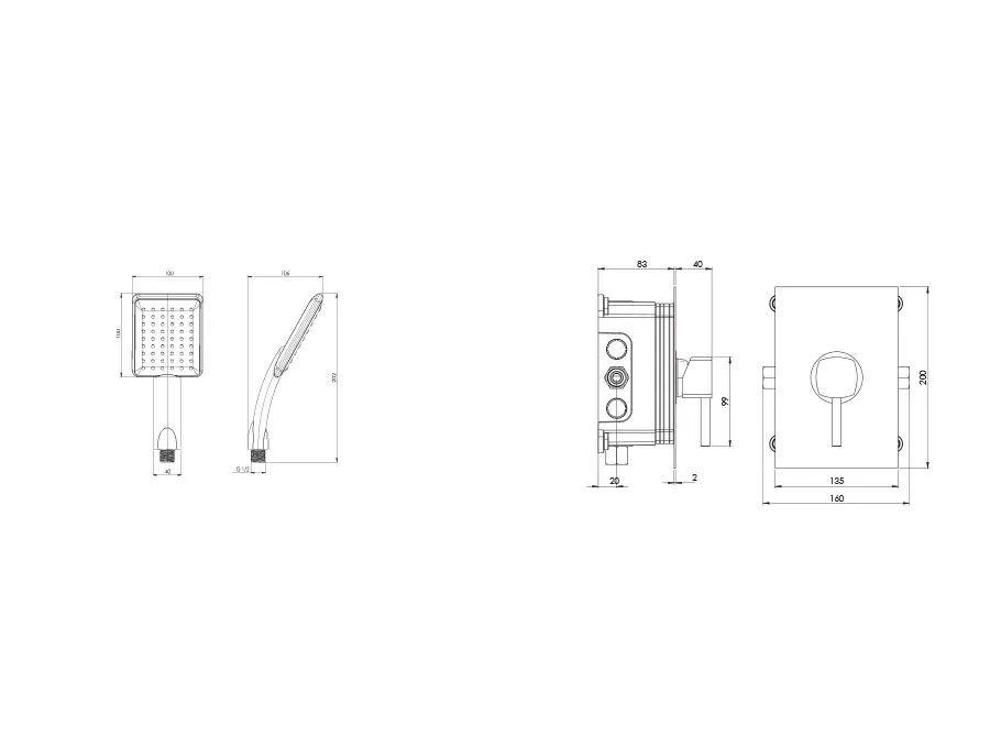 – شیر توکار حمام شودر تیپ دو شامل : پلیت و سر دوش متحرک میباشد.