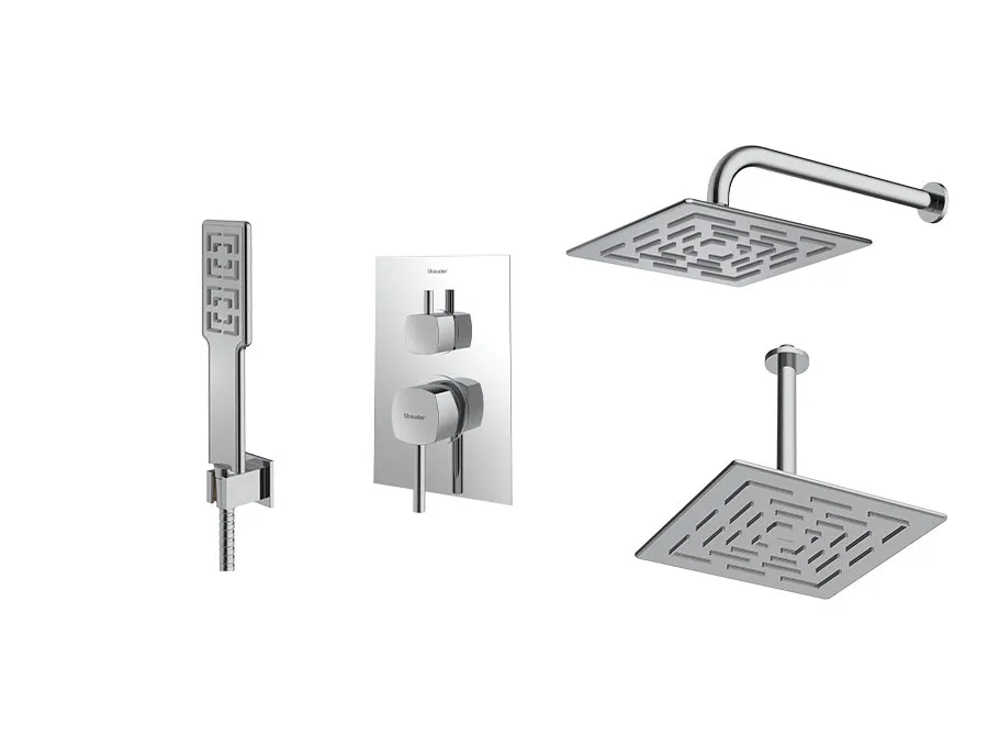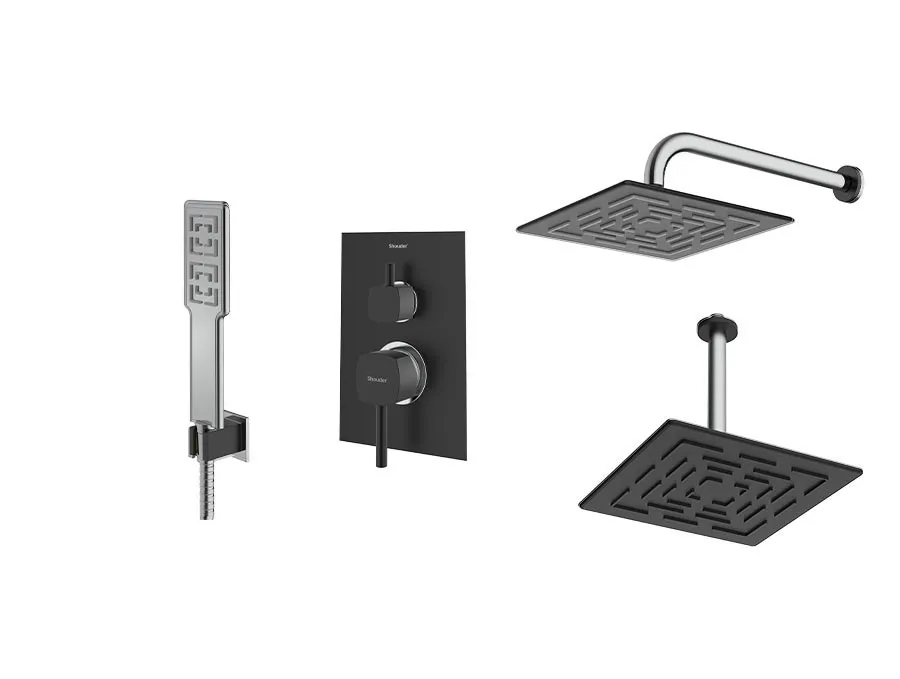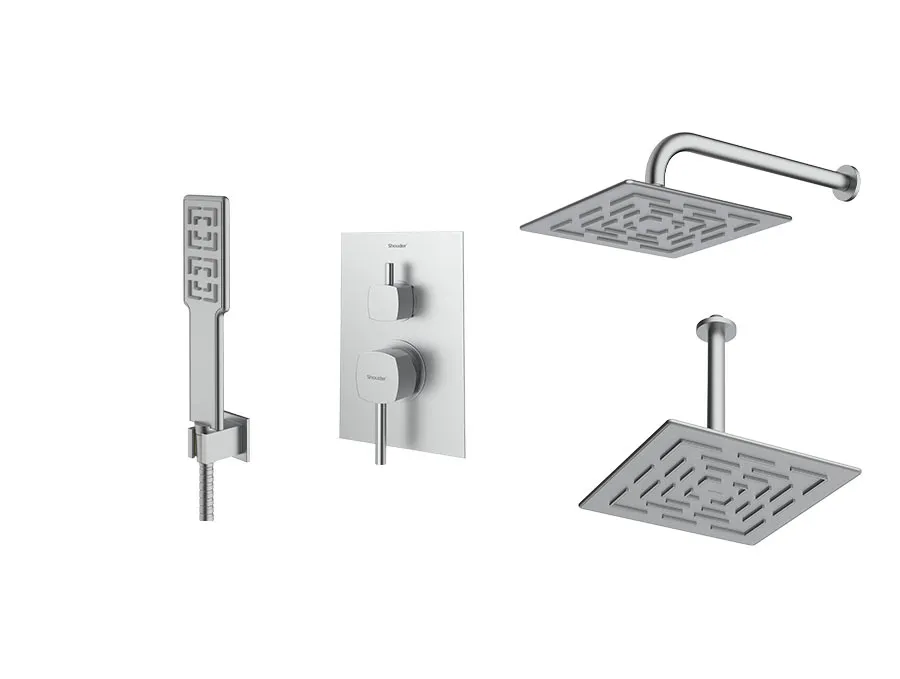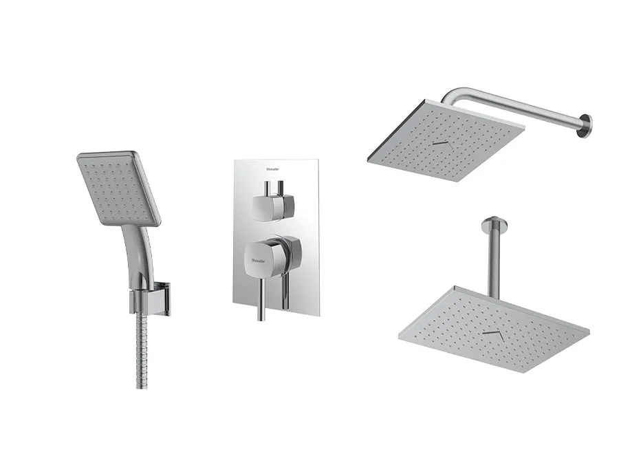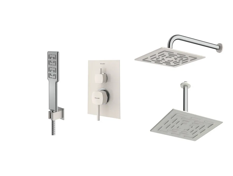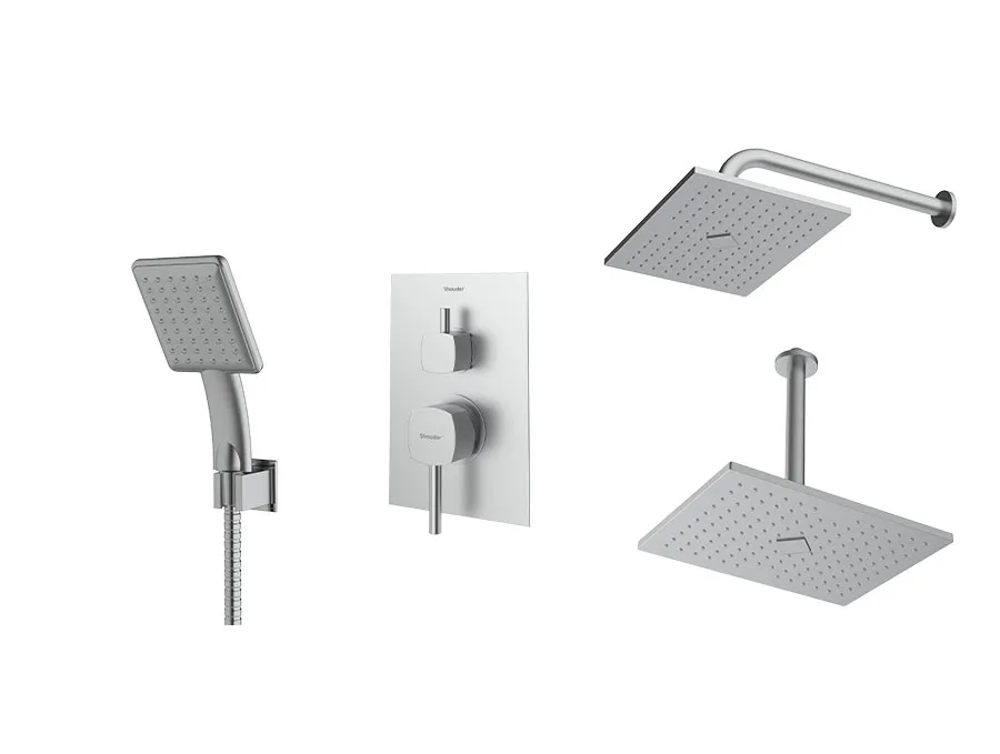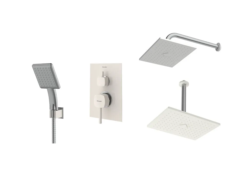 – شیر توکار حمام شودر تیپ سه شامل : پلیت، سر دوش ثابت، بازویی سقفی و سردوش متحرک میباشد.