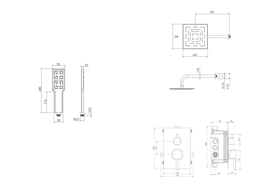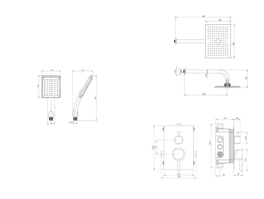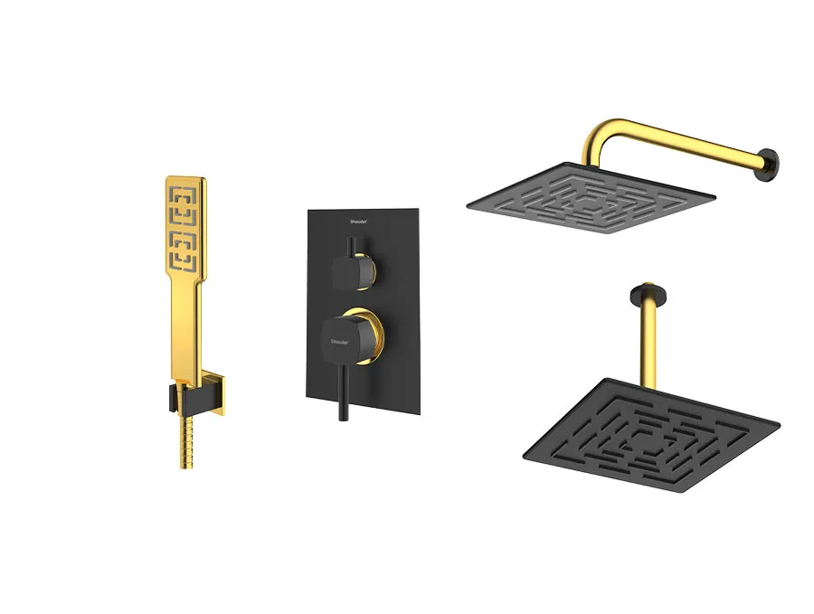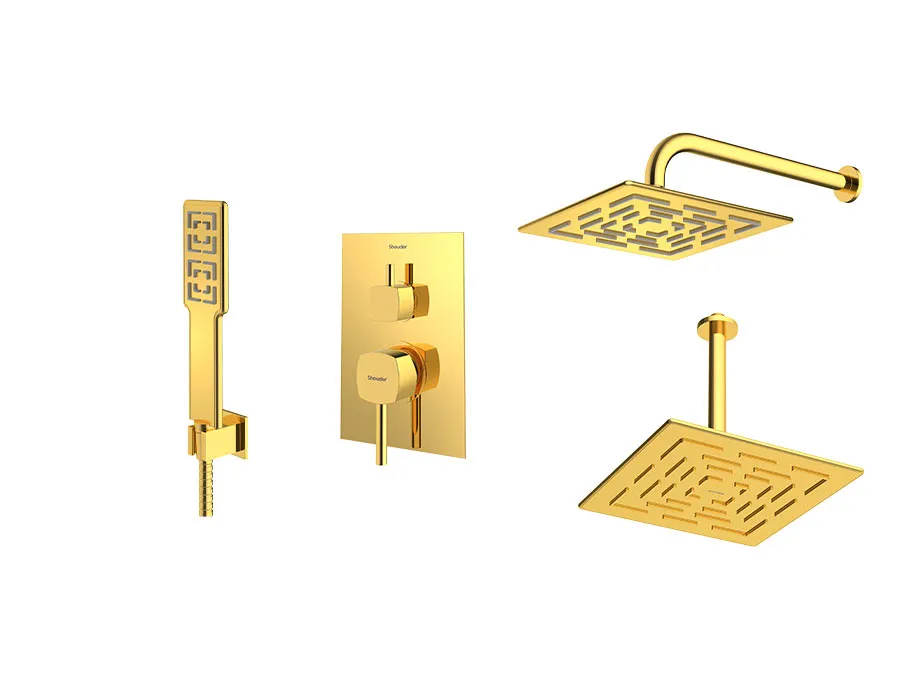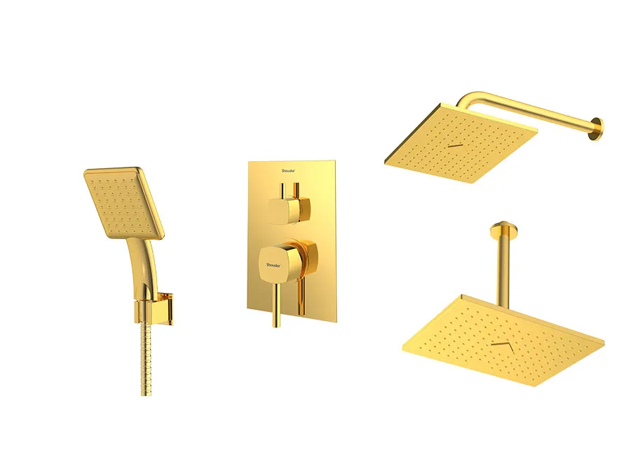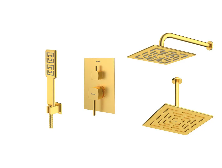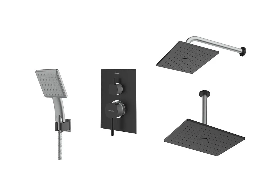 – شیر توکار حمام شودر تیپ سه شامل : پلیت، سر دوش ثابت، بازویی سقفی و سردوش متحرک میباشد.