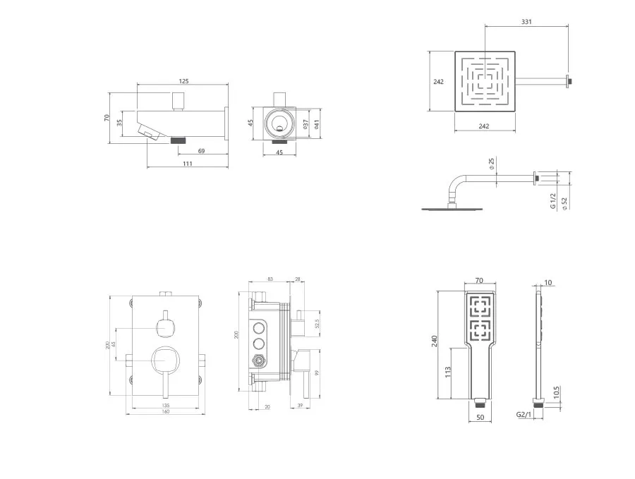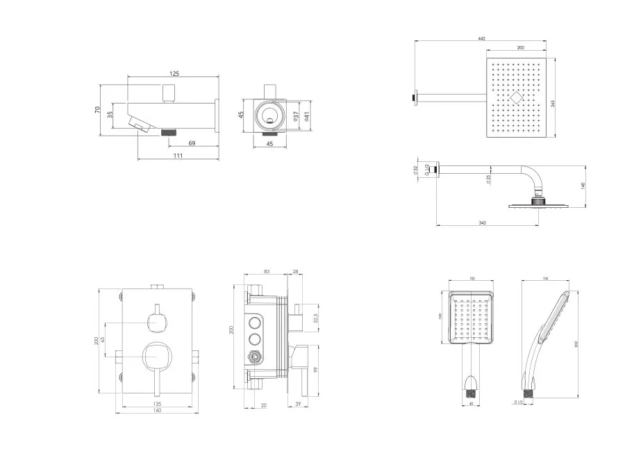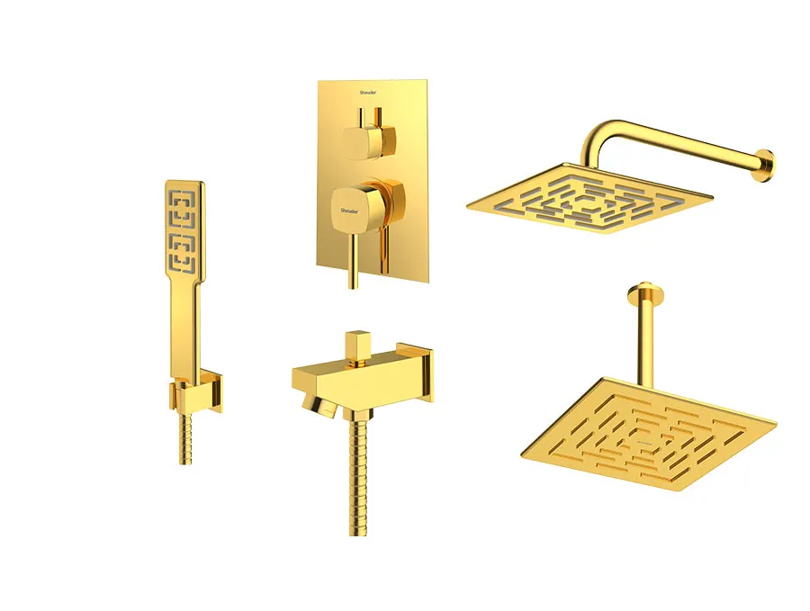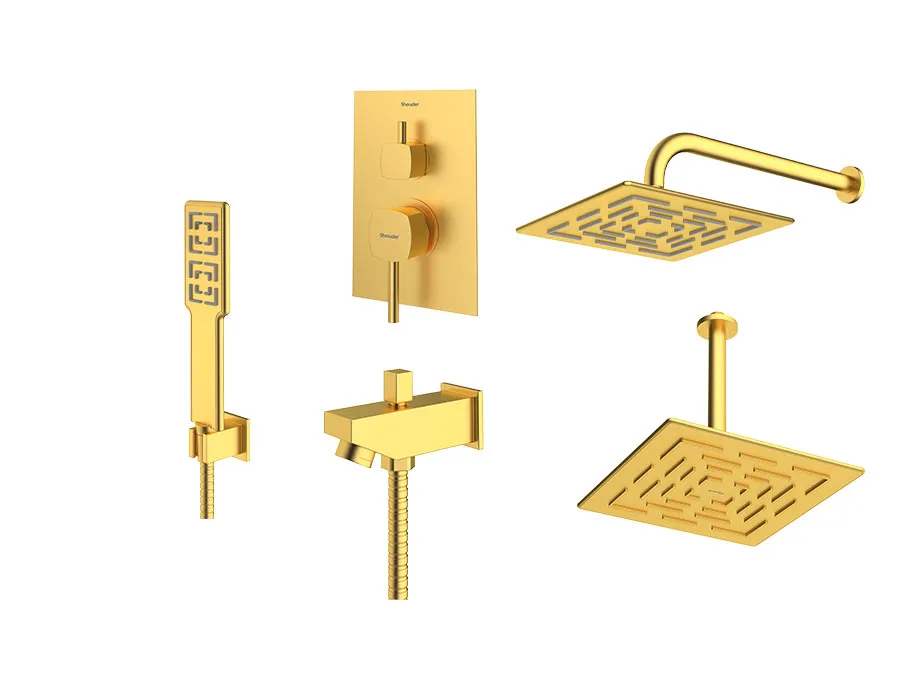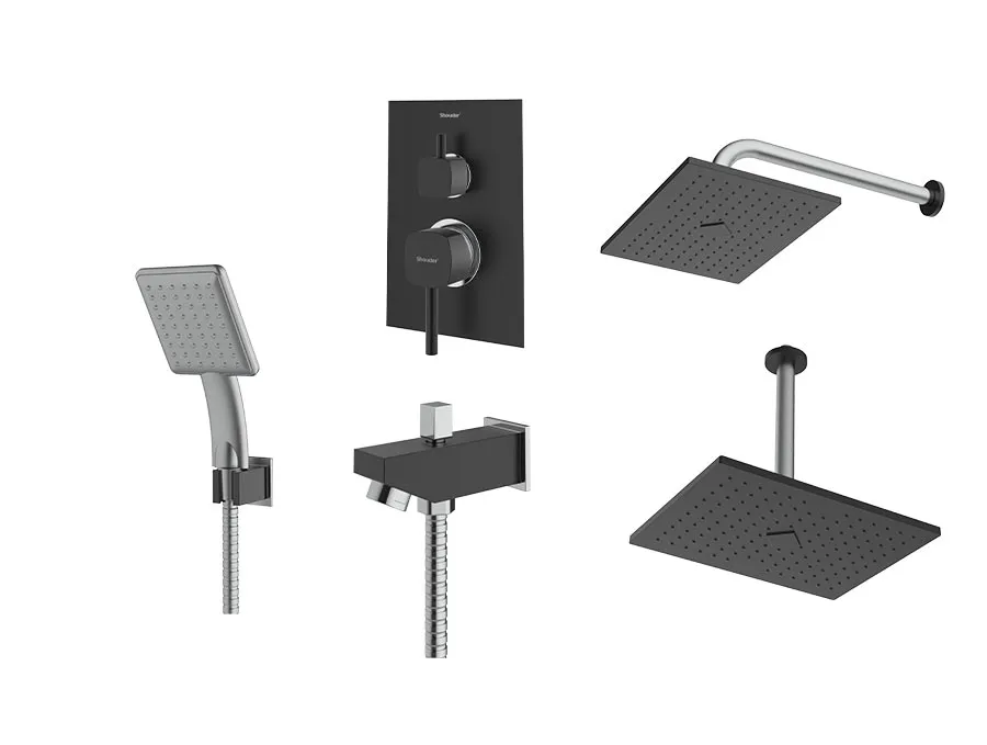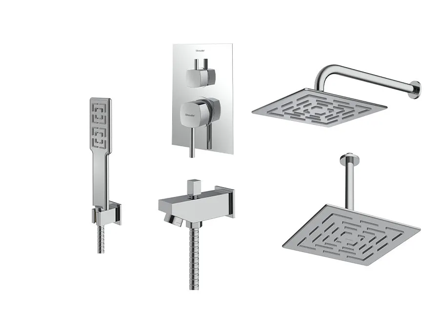 – شیر توکار حمام شودر تیپ چهار شامل : پلیت، سر دوش ثابت، بازویی سقفی، سردوش متحرک و آبریز میباشد.