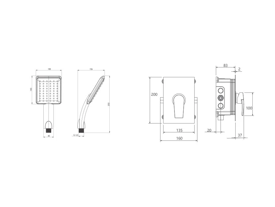 – شیر توکار حمام شودر تیپ دو شامل : پلیت و سر دوش متحرک میباشد.