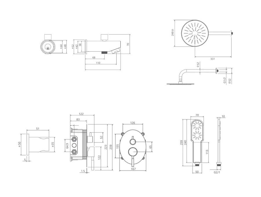 – سردوش ثابت و سردوش متحرک در دو نوع برنجی (Brass) و پلیمری (ABS) عرضه میشود.