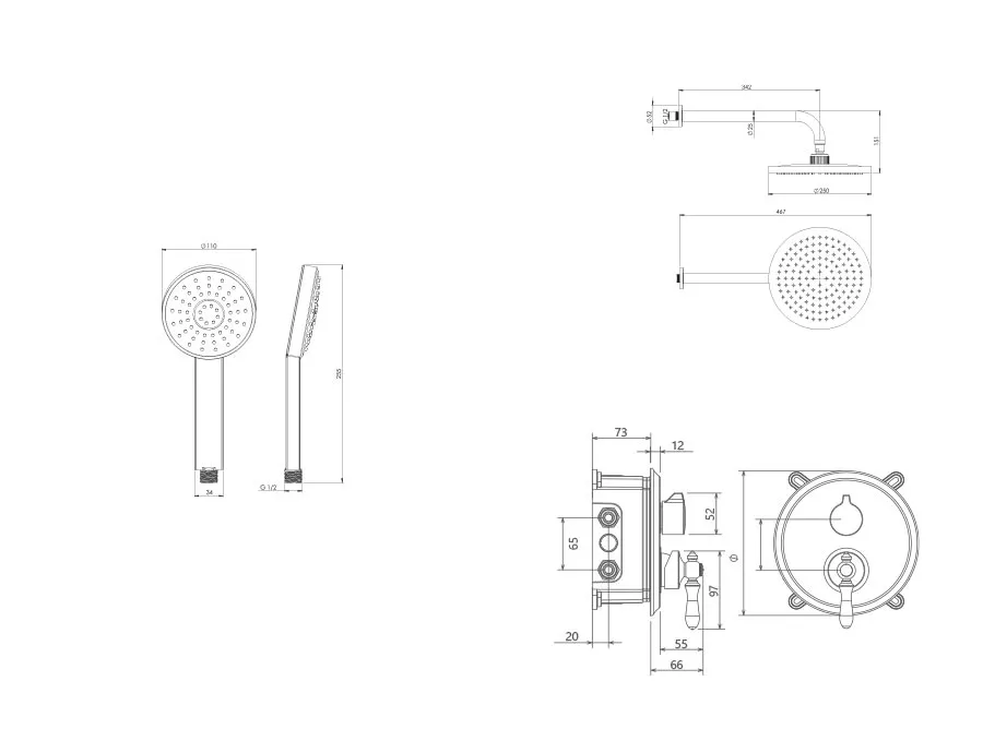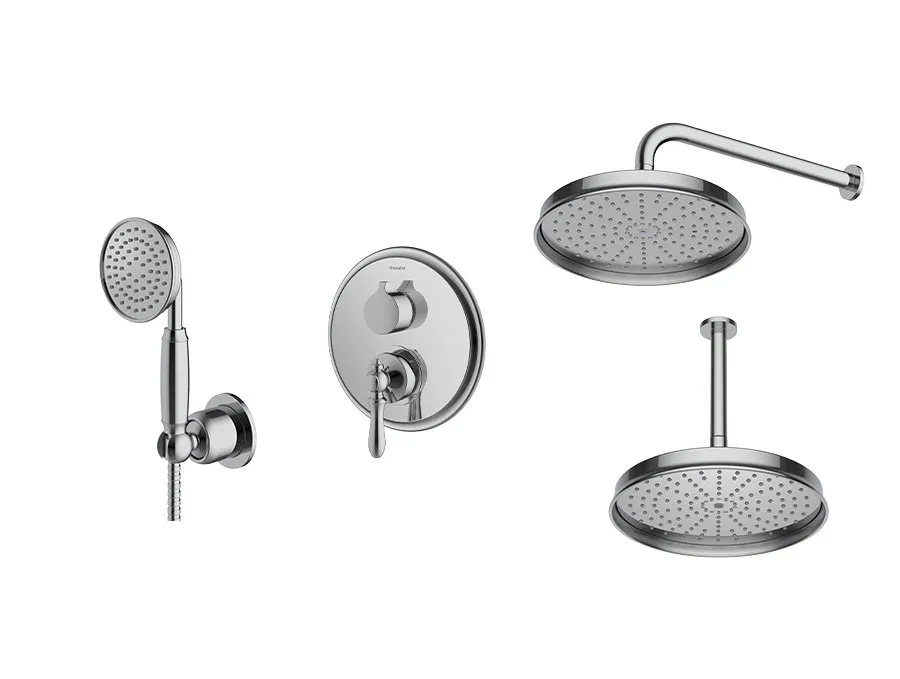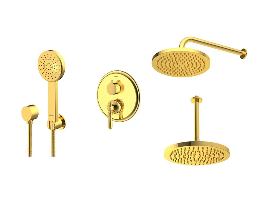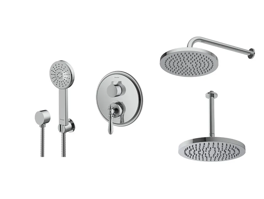 – شیر توکار حمام شودر تیپ سه شامل : پلیت، سر دوش ثابت، بازویی سقفی و سردوش متحرک میباشد.