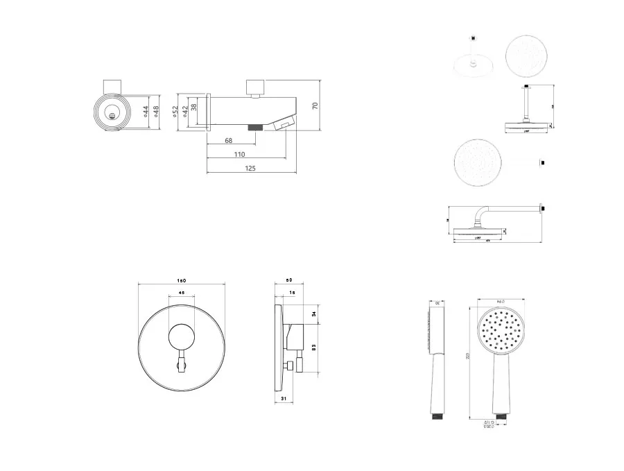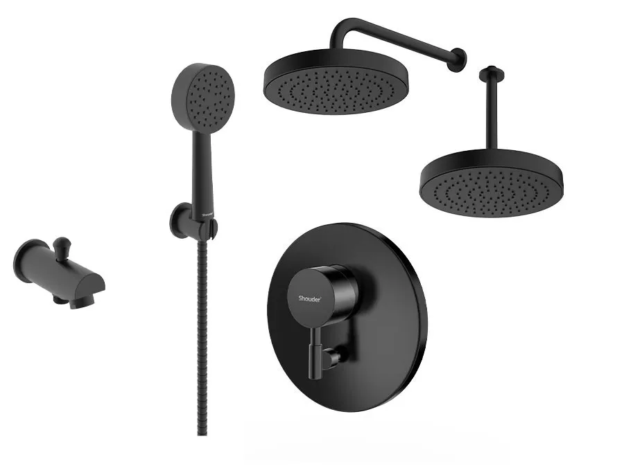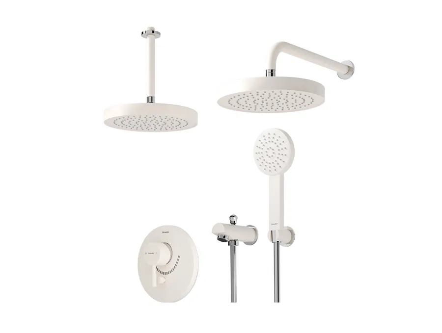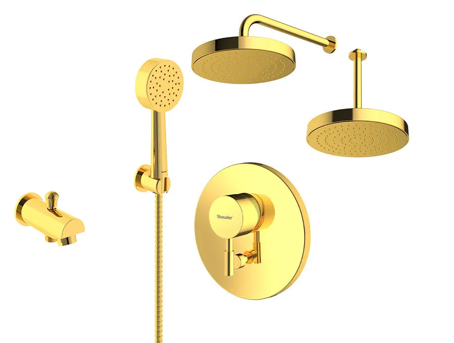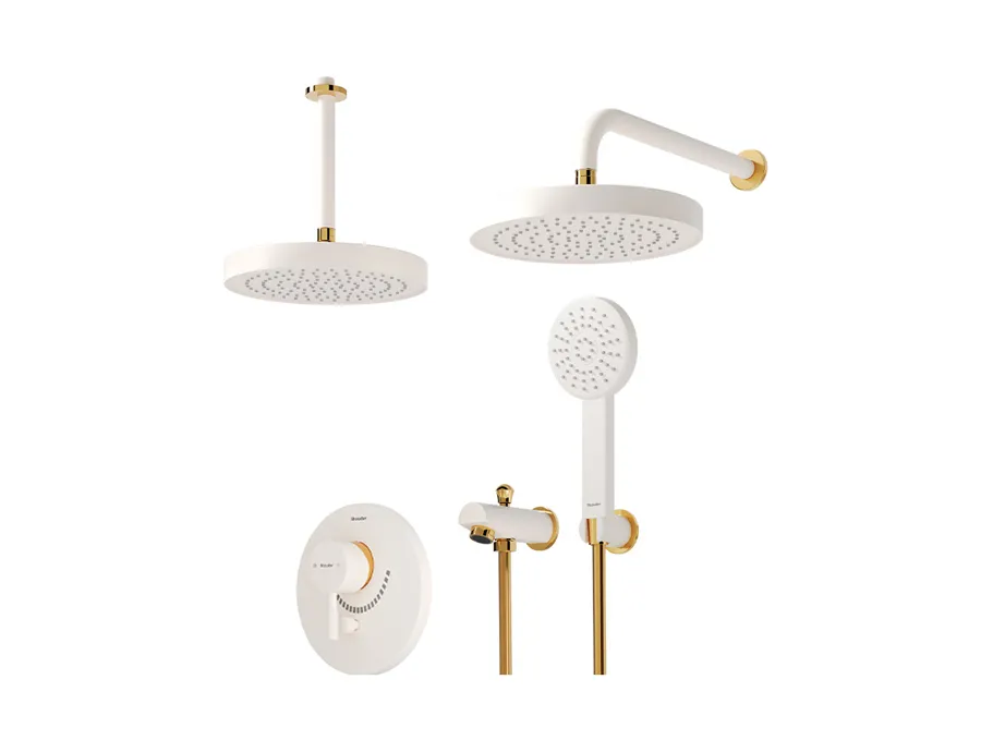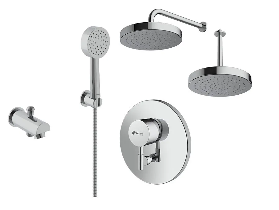 – شیر توکار حمام شودر تیپ چهار شامل : پلیت، سر دوش ثابت، بازویی سقفی، سردوش متحرک و آبریز میباشد.