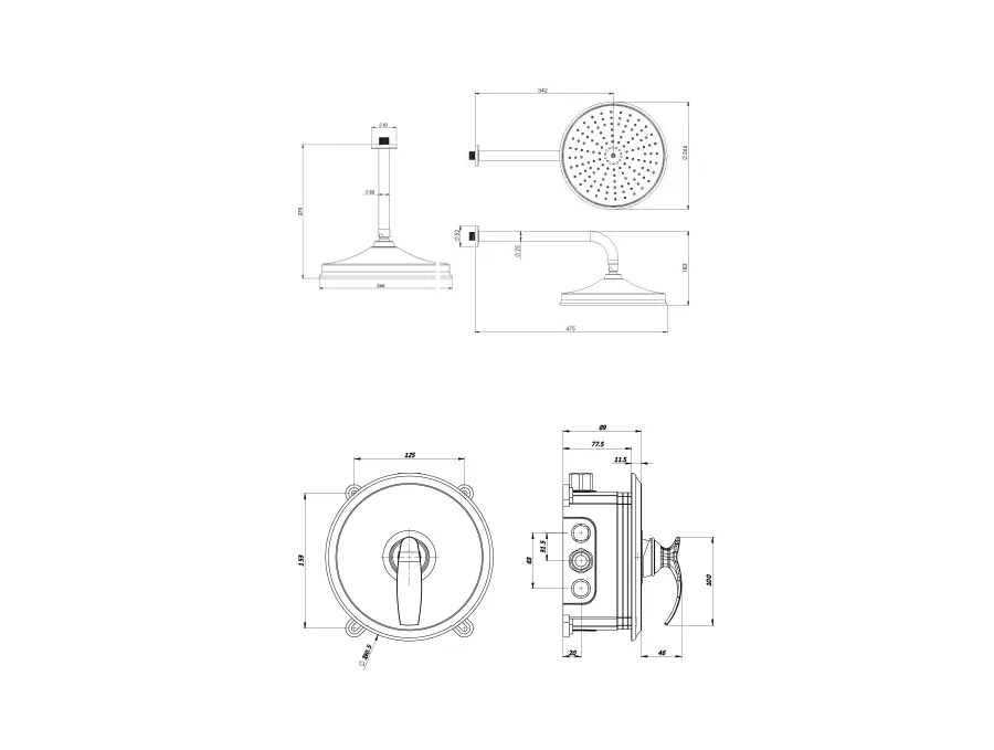 – شیر توکار حمام شودر تیپ یک شامل : پلیت، سر دوش ثابت و بازویی سقفی میباشد.