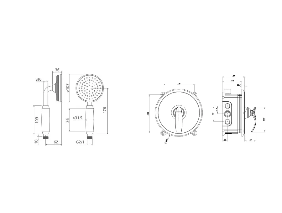 – شیر توکار حمام شودر تیپ دو شامل : پلیت و سر دوش متحرک میباشد.
