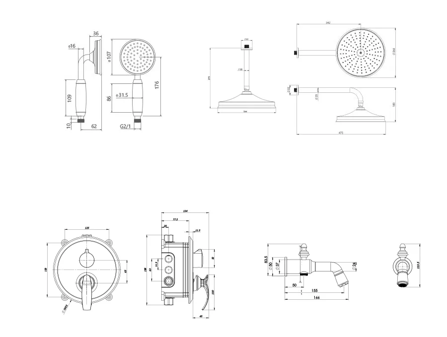 – شیر توکار حمام شودر تیپ چهار شامل : پلیت، سر دوش ثابت، بازویی سقفی، سردوش متحرک و آبریز میباشد.