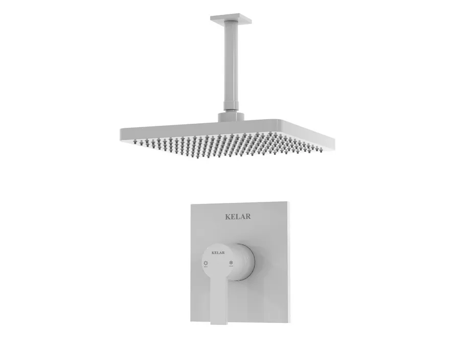 – شیر توکار حمام کلار مدل فلت کلاسیک تیپ یک شامل : پلاک، اهرم، سردوش و بازویی سقفی میباشد.