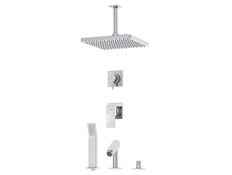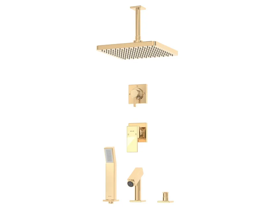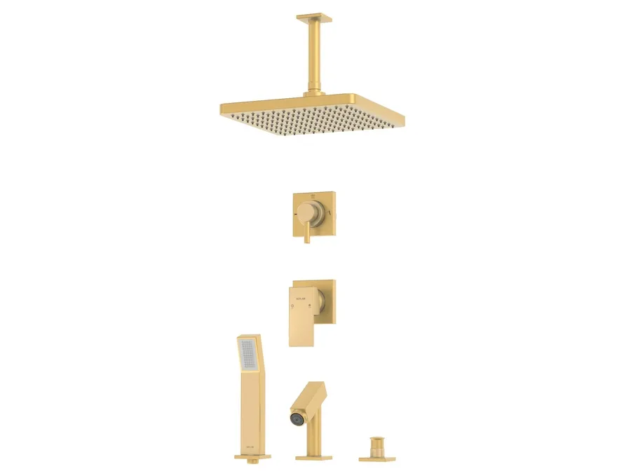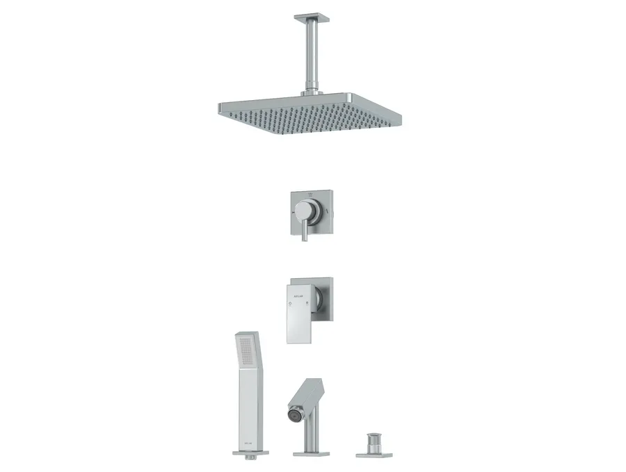– شیر توکار حمام کلار مدل فلت لاکچری تیپ پنج شامل : پلاک شیر، پلاک دایورتور، اهرم شیر، اهرم دایورتور، سردوش، دایورتور روی وان، شیلنگ، گوشی، پایه گوشی روی وان، آبریز روی وان و بازویی سقفی میباشد.