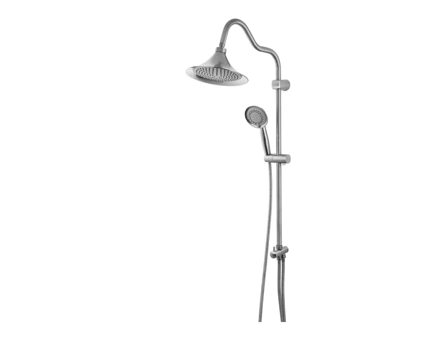 مدل سردوش گرد ,قطر سردوش 25 سانتی متر ,مدل سردوش تلفنی چهار حالته ,جنس علم استیل 304 ,قطر رزوه 1/2 ,ارتفاع علم 101 سانتی متر ,جنس سه راهی برنج ,نوع شیر سه راه کمر تلفنی کاتریج معلق ,نوع شیلنگ استیل 304 – PEX ,مقاوم در برابر ضربه ,سازگار با محیط زیست ,آبکاری با دوام |