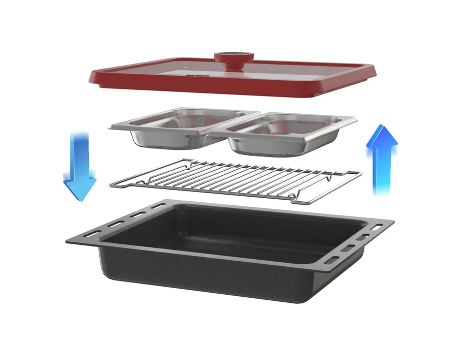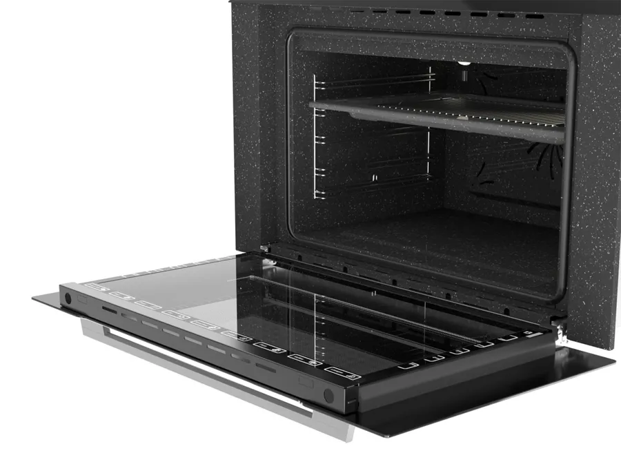 مجهز به بخارپز ,دارای نمایشگر دیجیتال ,قابلیت ذخیره برنامه ,عملکرد پخت سریع ,۲ عدد سینی (کم عمق و عمیق) ,پوشش لعاب داخلی آسان تمیز شونده ,2 عدد ریل تلسکوپی ,درب فر مجهز به شیشه Low-e |