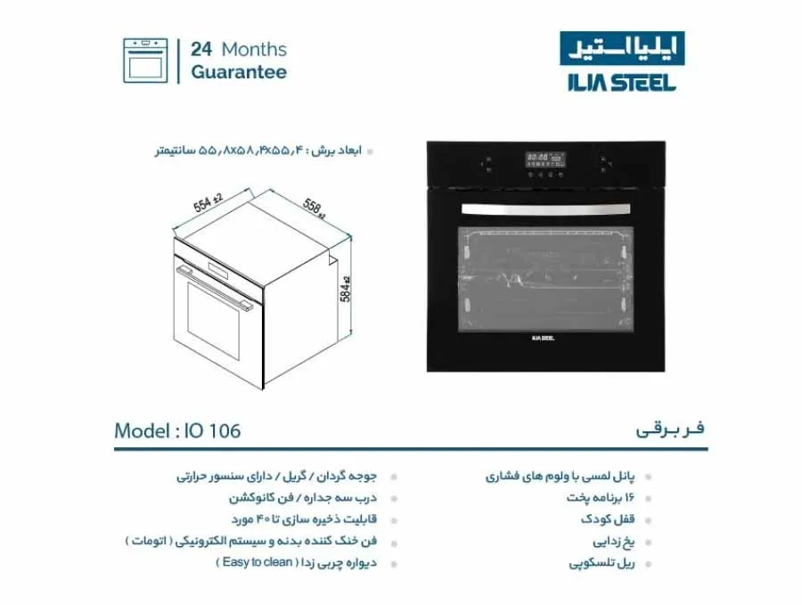 مشخصات فر ایلیا استیل مدل IO106 برقی توکار