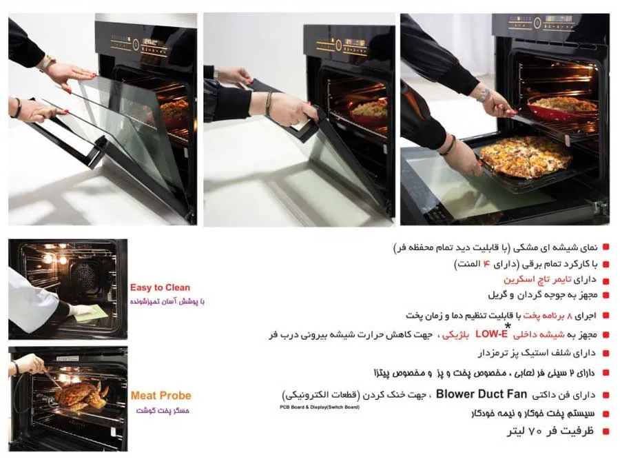 شیشه مشکی (با قابلیت دید تمام محفظه فر) |