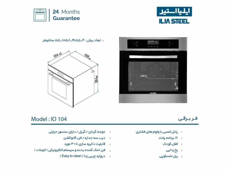 مشخصات فر برقی ایلیا استیل مدل IO104 توکار