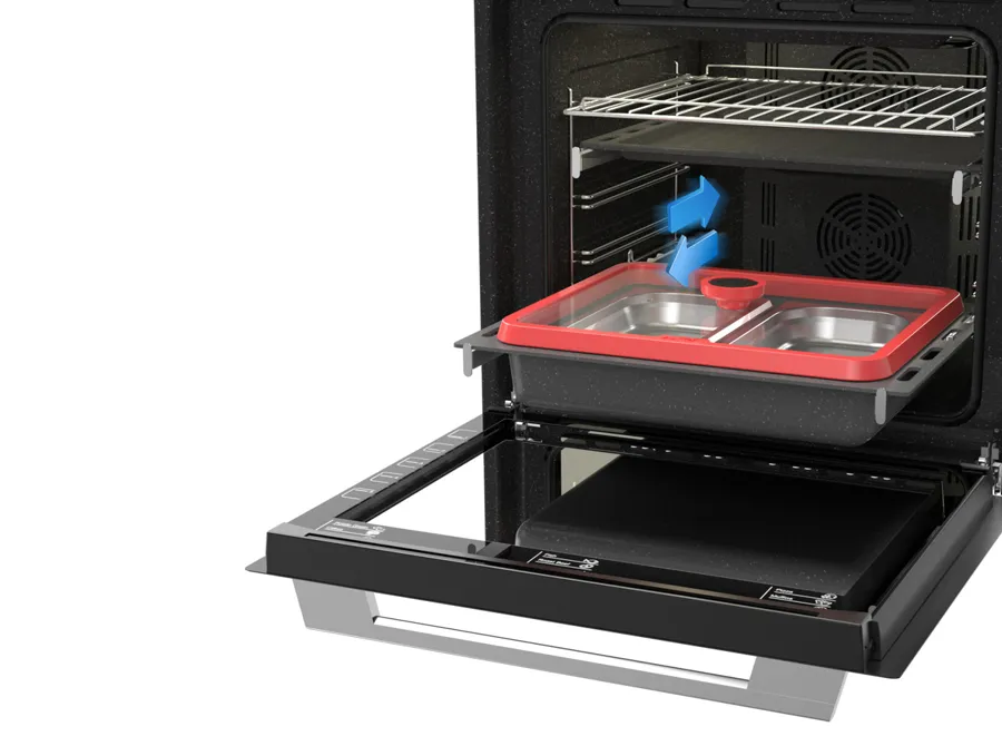فر دوقلو (پخت همزمان دو غذای متفاوت) ,مجهز به بخارپز ,دارای نمایشگر دیجیتال ,قابلیت ذخیره برنامه ,عملکرد پخت سریع ,۲ عدد سینی (کم عمق و عمیق) ,پوشش لعاب داخلی آسان تمیز شونده ,۴ عدد ریل تلسکوپی |